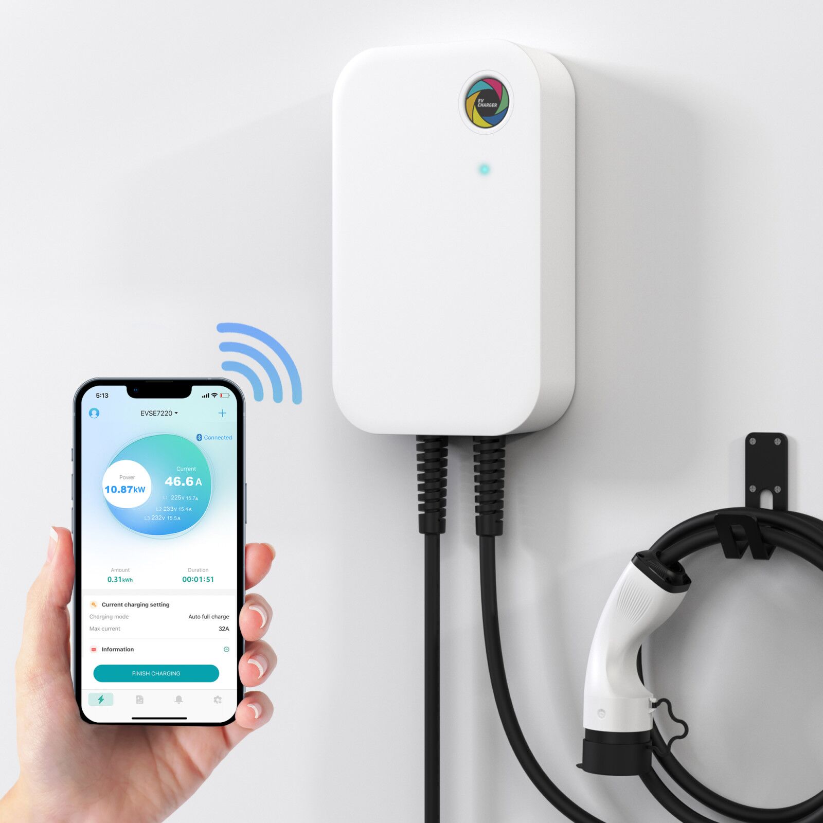 The AC EV charger has an output range of 16A to 48A. Touch screen function, Self-select and adjust charging current and charging time.